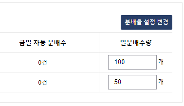 먼저 분배 될 수량을 설정하고 `분배율 설정 변경`을 통해서 분배수를 설정합니다.