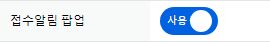 먼저 환경설정->기본설정에서 접수알림 팝업 사용을 체크 해야합니다.