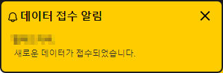 접수 알림 팝업을 사용하면 새로운 데이터가 접수될 때 아래와 같은 팝업이 오른쪽 상단에 표시됩니다.